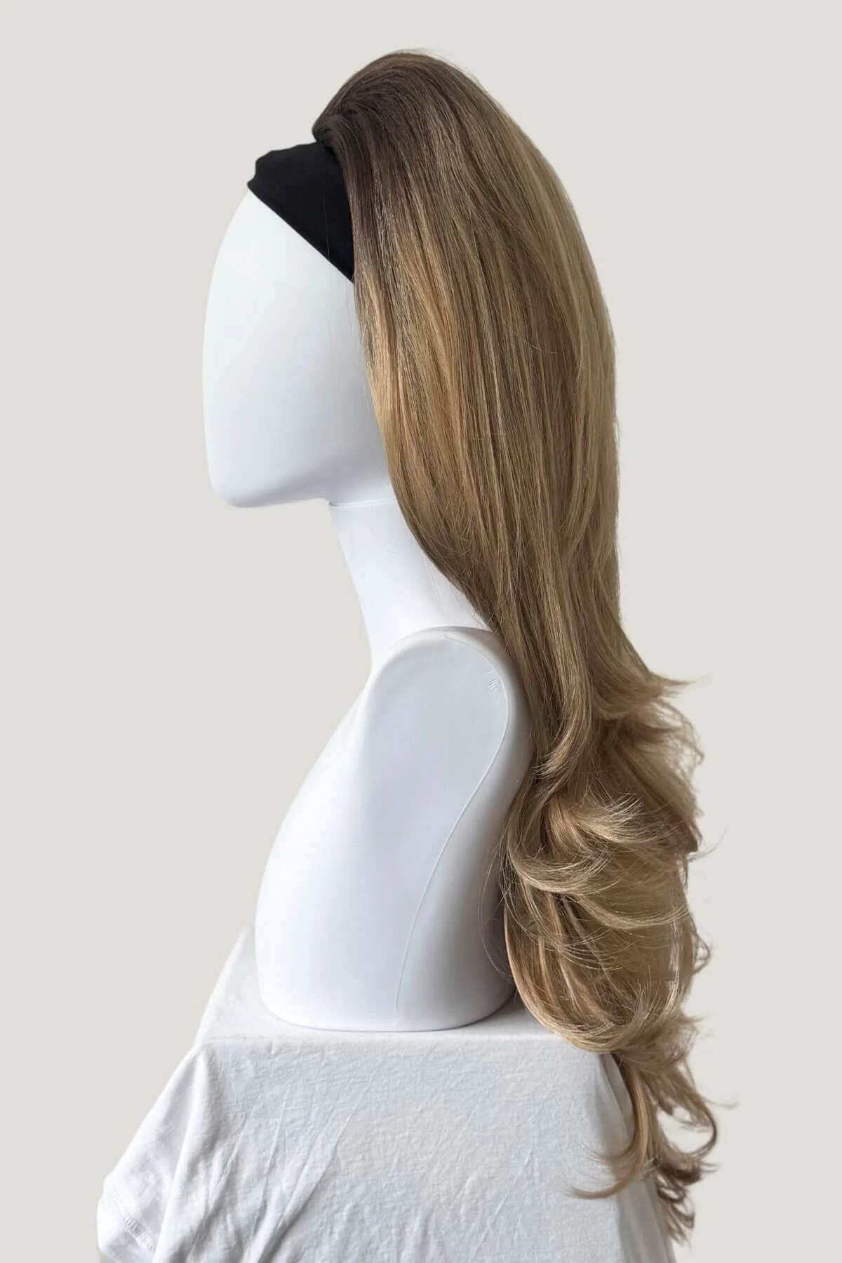 Transform your look with effortless glamour. The Adeline half wig features a stunning brown to blonde ombre that adds dimension and sophistication to your style. So easy to integrate seamlessly with your own hair.
